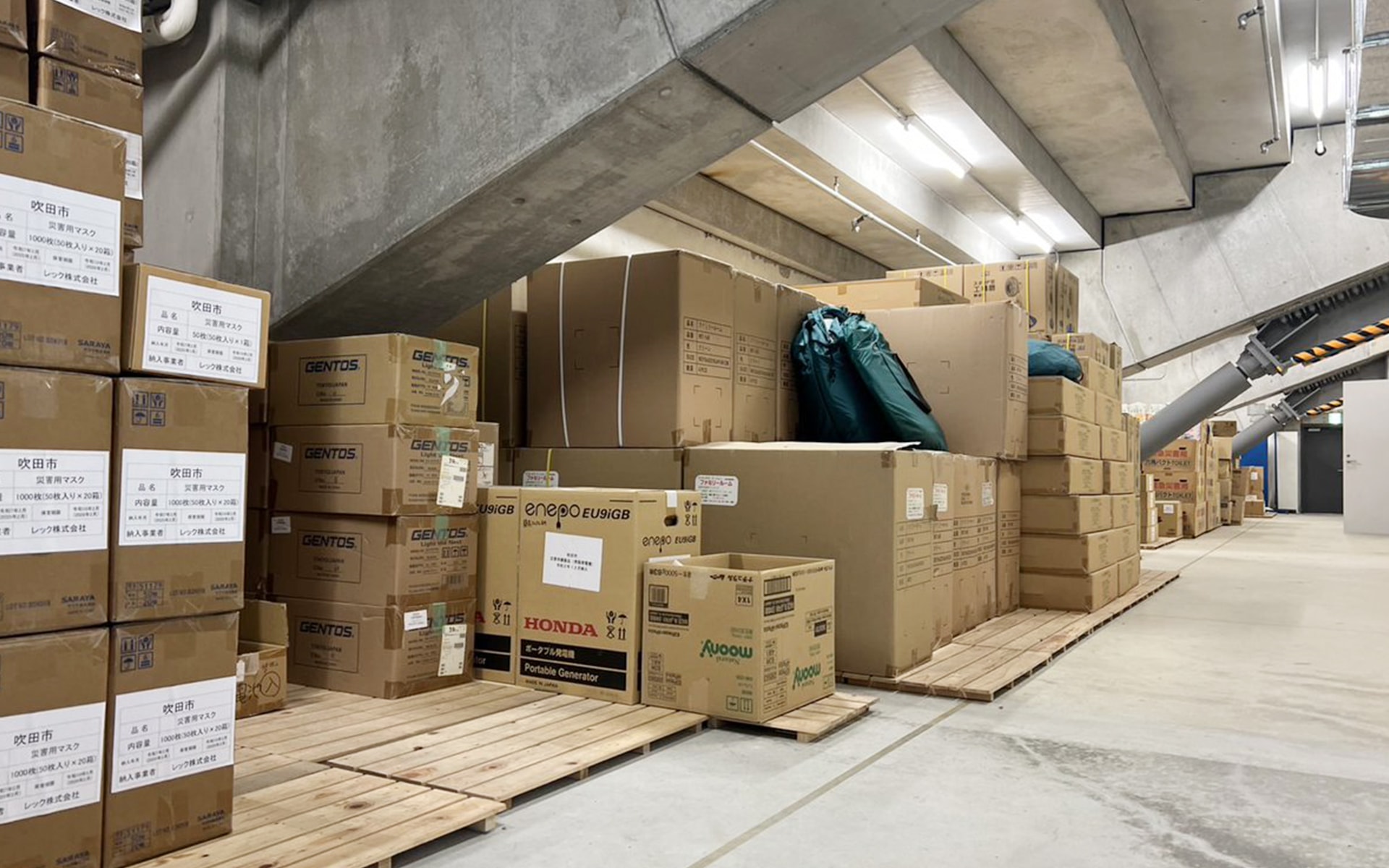 「災害が発生し、吹田市役所や吹田警察が被災して使えなくなった時を想定して、新スタジアムを警察、自衛隊が集まる防災施設の本拠地にしたいという話は建設の計画が始まった当初から吹田市の要望として伝えていました。これは、吹田市民の皆さんの安全を守ることはもちろん、もっと大規模な視野での活用を想定して、です。備蓄庫には常に有事のための飲食物を備蓄し、定期的に入れ替えを行なっていますが、これも吹田市だけのものとは考えていません。災害に市域境界はないと考えても、困った時にはお互い様だという思いはいつもあります。昨年発生した能登半島地震の際も吹田市から800名ほど人員を派遣し、復興支援に加わってもらいましたが、そうして様々な活動に従事し、危機管理を肌身で感じた経験は吹田市としての財産にもなっています。幸い、この10年は吹田市として、新スタジアムを防災拠点に使わなければいけないようなことは起きず、胸を撫で下ろしていますが、有事の時には必ずは過去の経験が活かされるんじゃないかと思っています(後藤)」